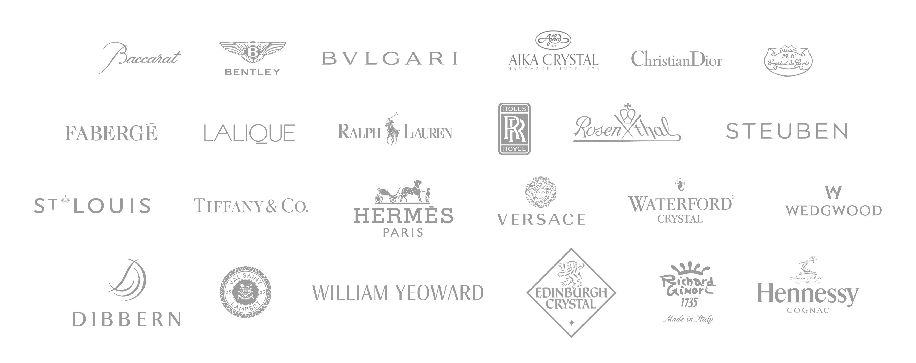 Product made by Ajka for Baccarat, Bulgari, Bentley, Cristal de Paris, Christian Dior, Fabergé, Hennessy, Edinburgh Crystal, Polo Ralph Lauren, Richard Ginori, Rosenthal, Rolls Roys, Saint Louis, Tiffany, Val Saint Lambert, Versace, William Yeoward, Waterford, etc